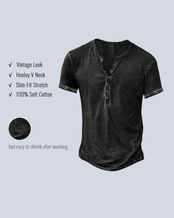 - Slim-fit henley shirts are made of soft, comfortable cotton and feature a washed look. They’re perfect for all genders and all seasons.