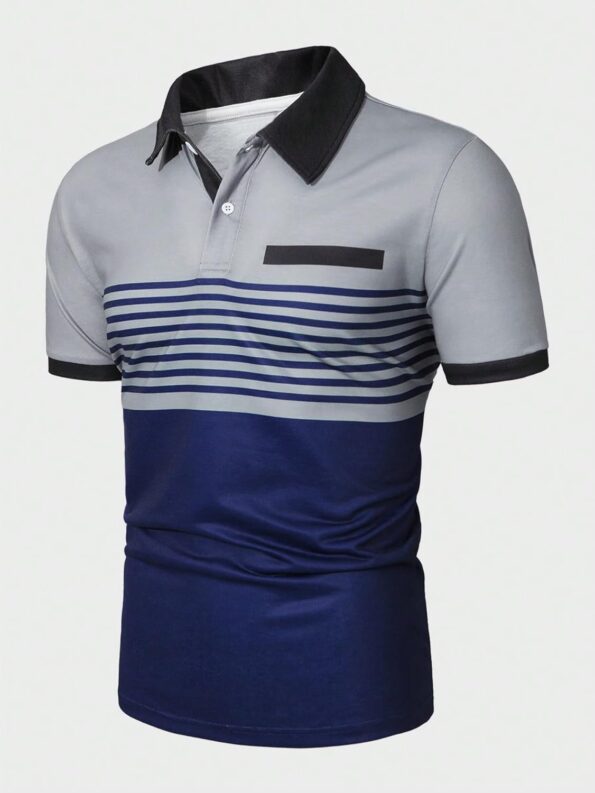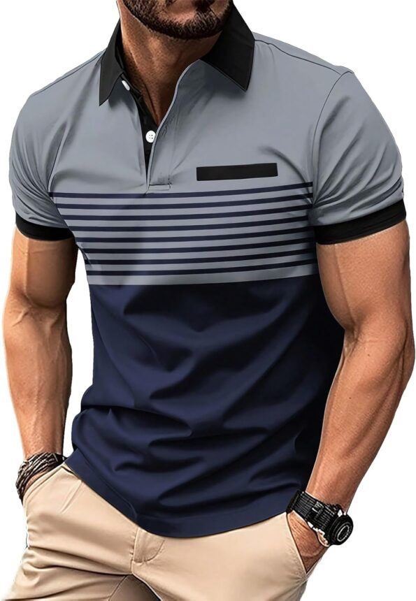 Men’s Golf Shirts Short Striped Collared T Shirt Casual Work Shirts