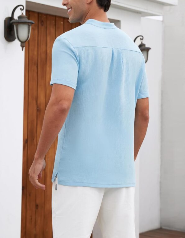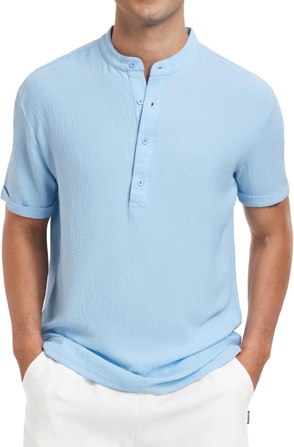 Men’s Henley Shirts Casual Beach Shirts Band Collar Short Shirts for Summer
