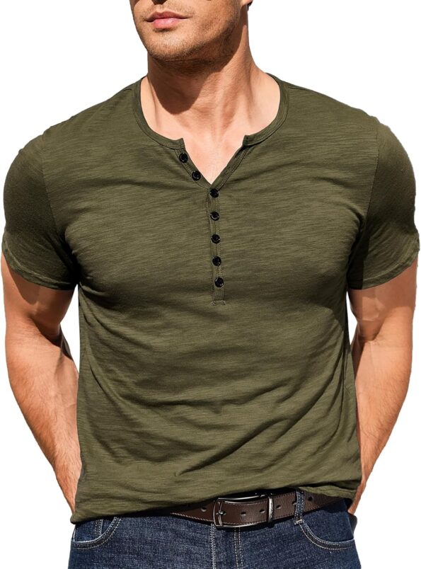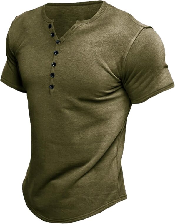 - Classic V-neck: Designed With 7 Buttons,2 Of Which Can Be Used And The Other 5 Cannot Be Loosened, Making This Henry T-shirt Look More Stylish,And It Can Further Highlight Your Chest Muscles.
