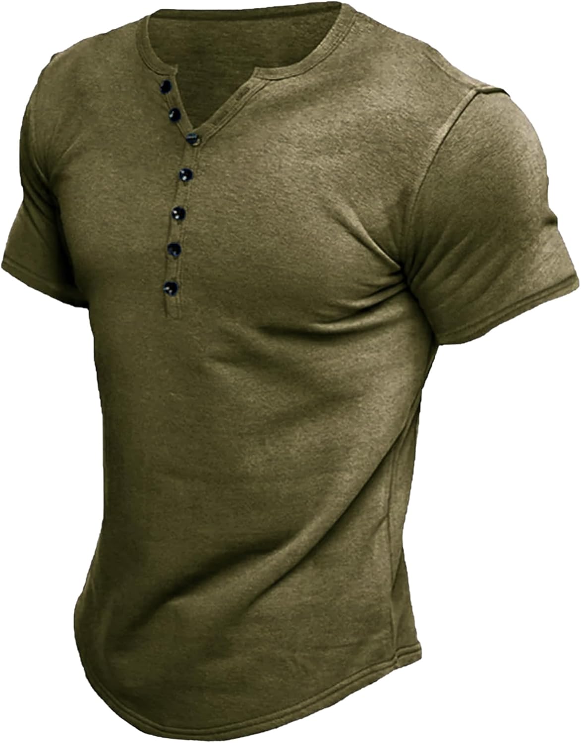 Men’s Henley Shirts Short Muscle Fit Shirts Vintage Casual Button V Neck T-Shirts for Men